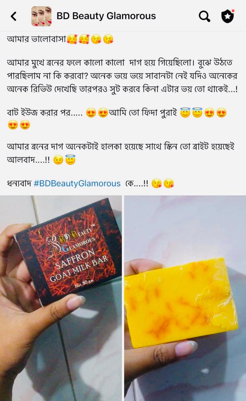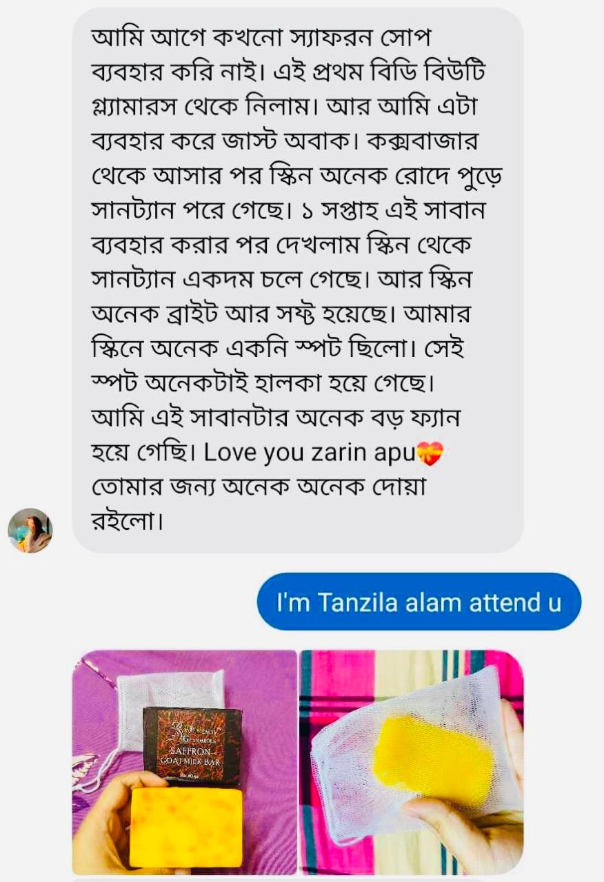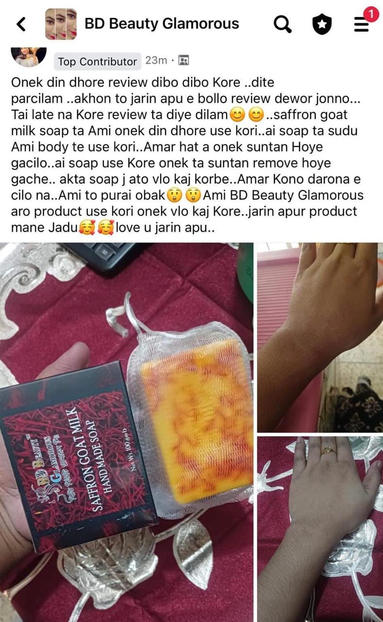 ২।নিজস্ব ফ্যাক্টরি এবং বাছাইকৃত সেরা কাঁচামাল থেকে আমাদের স্যাফরন গোট মিল্ক হ্যান্ডমেড সোপ তৈরি করা হয় যার গুণগত মান নিয়ন্ত্রণ করে আমাদের দক্ষ কেমিস্ট দল।